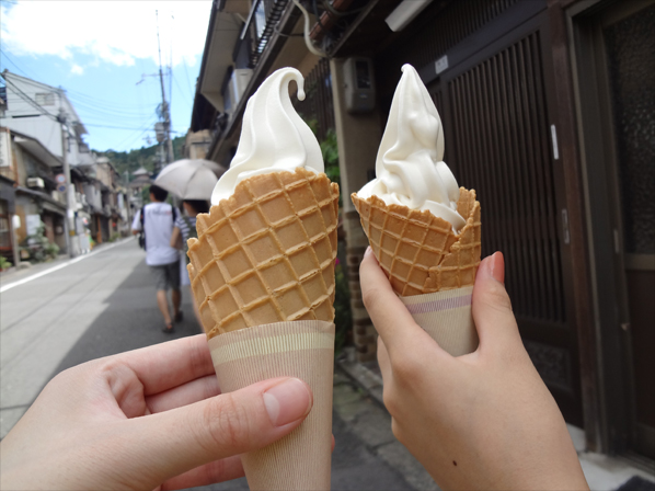 ソフトクリームとかかき氷とか食べてうろうろして、また市バスで今度は八坂神社へ。
