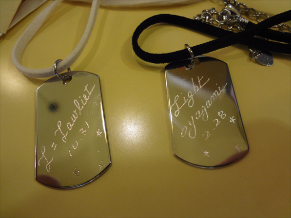 ネックレスも買ったんですけど、ネーム入れられるとのことで私がL、すくもさんが月の名前とそれぞれの誕生日を彫ってもらいました。